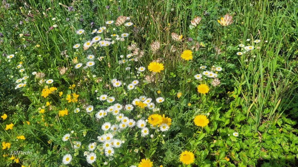 Das Einjährige Berufkraut, auch Feinstrahl genannt (Erigeron anuus), ist eine Pflanze, die man leicht erkennt. Blüten ähnlich wie Gänseblümchen oder Kamille, aber bis 1m Höhe. Eine leichte, grazile Gestalt.